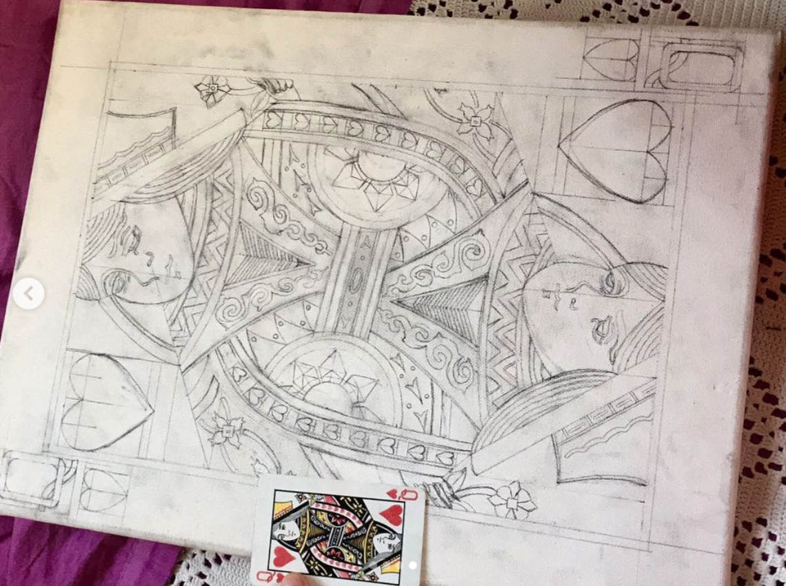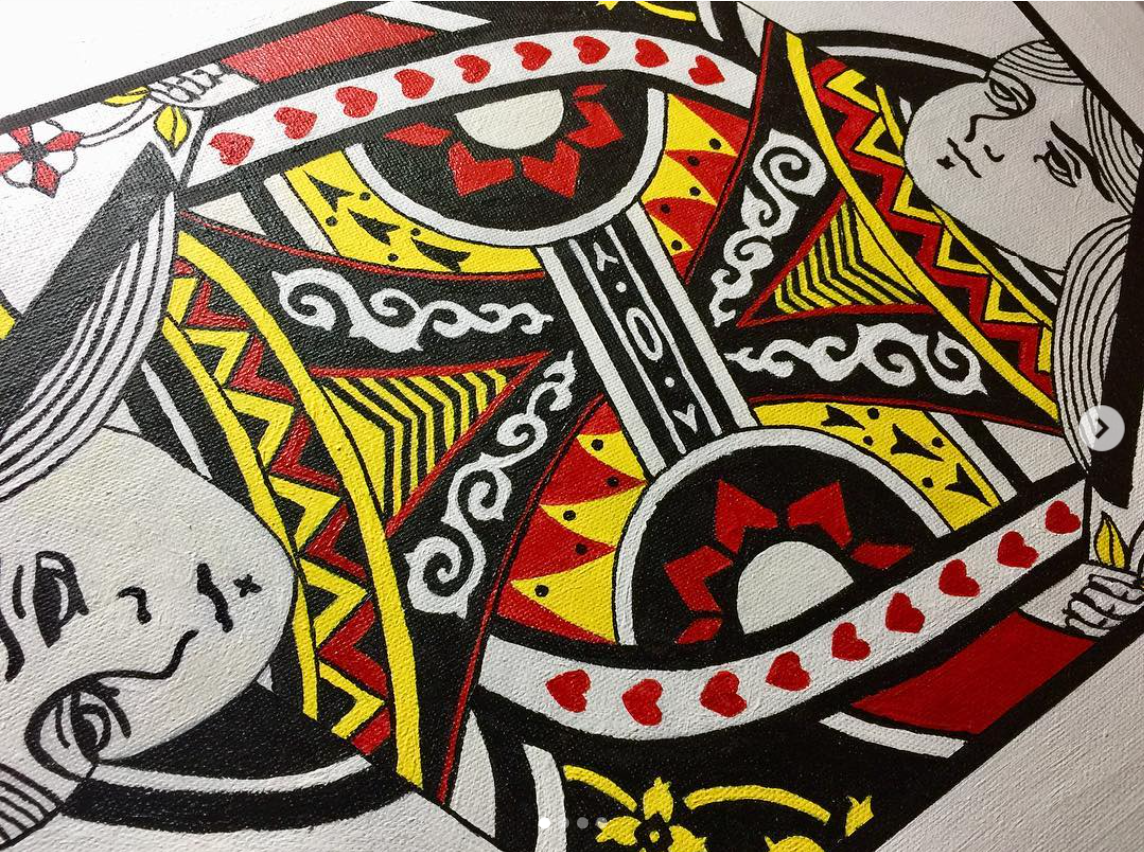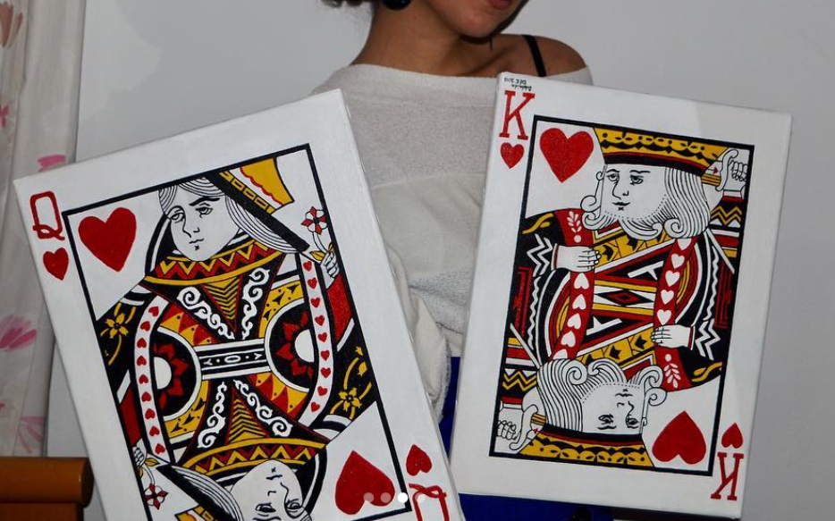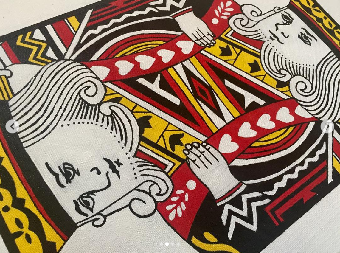 These 2-part paintings are large-size copies (1:5.5 ratio) of the original King and Queen cards. They were intended to be placed above the head of a double bed in a master bedroom.