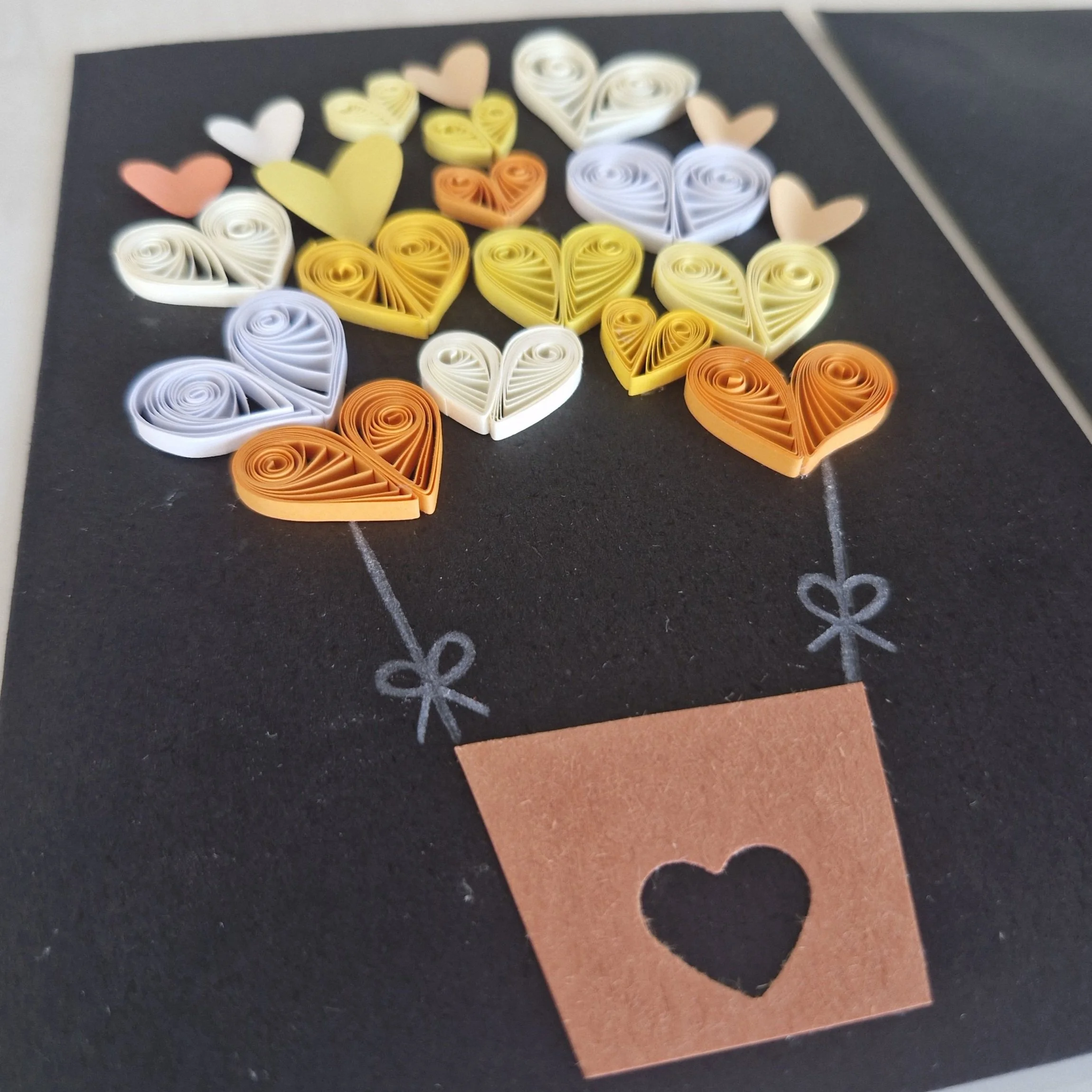 This card is made using ‘quilling’ technique or otherwise known as ‘paper filigree’. Quilling is a time-consuming craft technique that involves rolling, shaping, and gluing strips of paper into various designs.